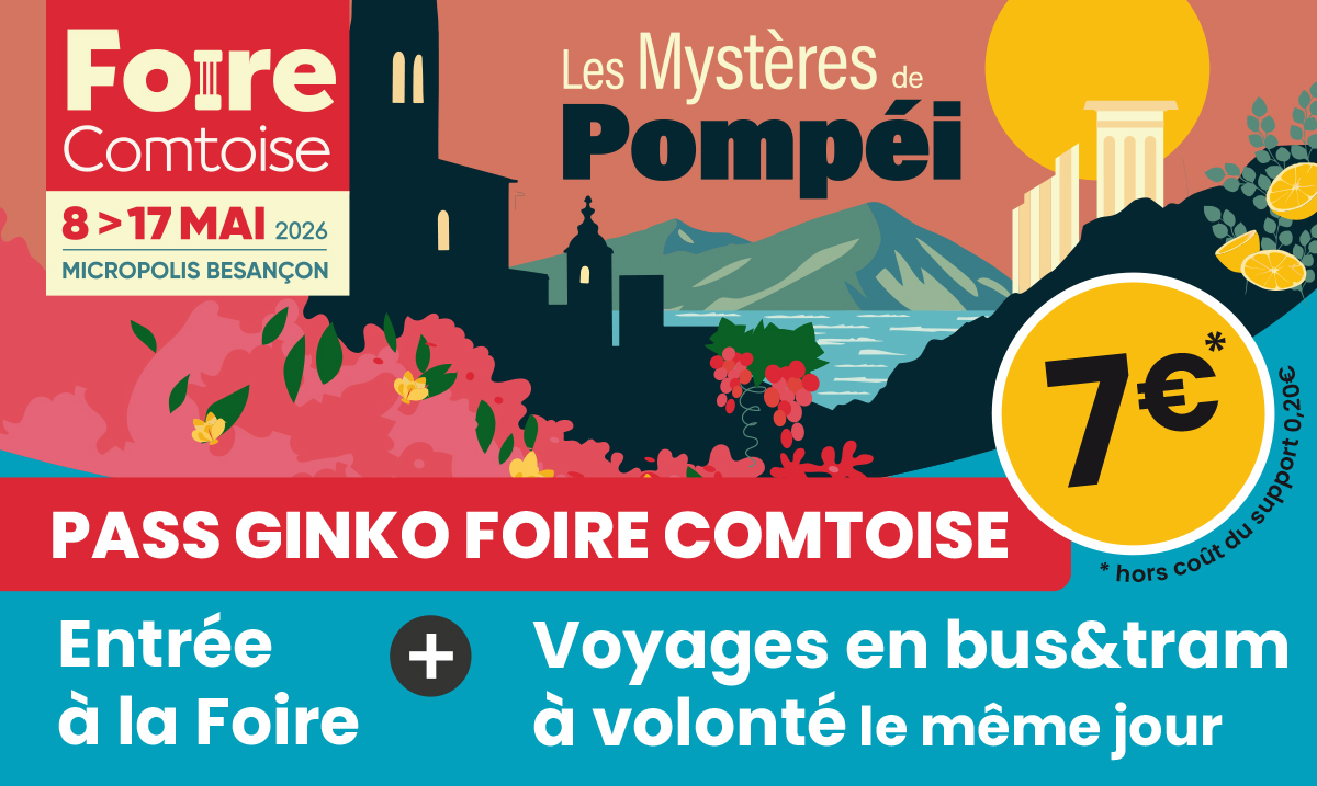 Pour en bénéficier, présentez aux caisses(3) de la Foire Comtoise votre carte Ginko Mobilités chargée d'un abonnement (mensuel ou annuel) en cours de validité.